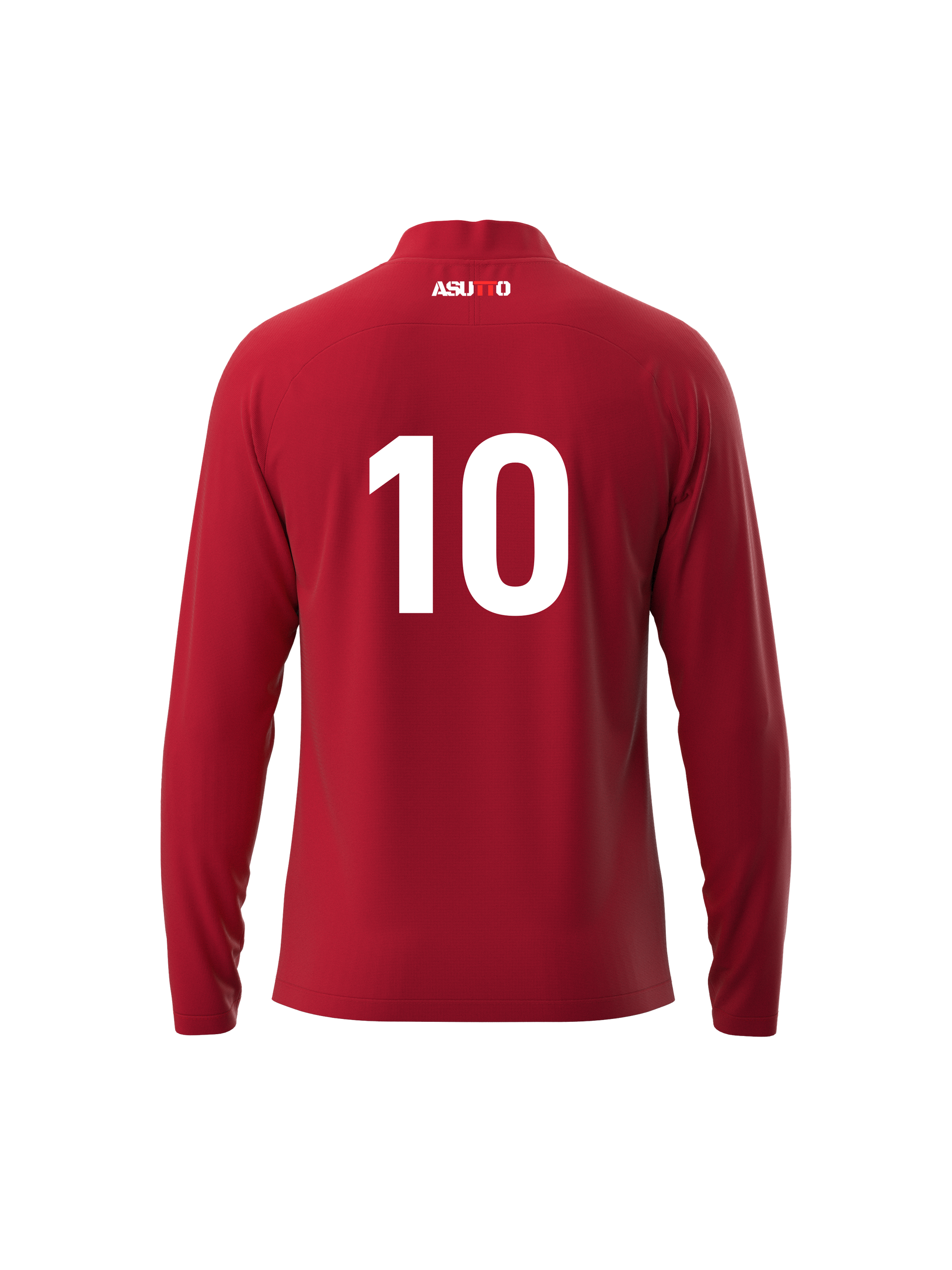 Innovative Design for Athletes: Our quarter-zip jumper is crafted with performance and comfort in mind, featuring a unique thumbhole detail on the sleeves to keep the jumper securely in place during intense movements. This thoughtful addition ensures a snug fit, allowing athletes to focus on the game without distractions.